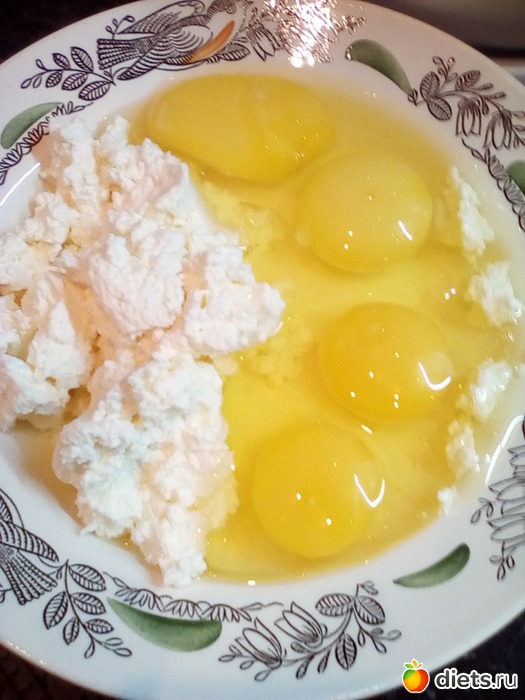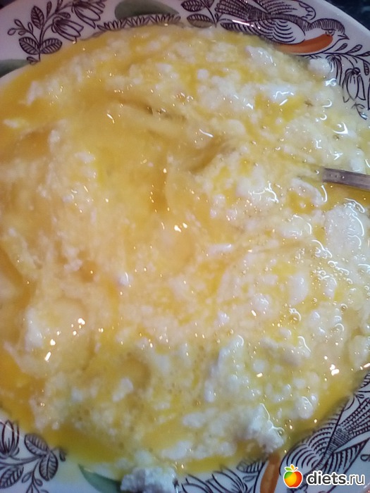 Брынзу(или то, с чем Вы готовите) или крошим при помощи вилки, или натираем на крупной терке. Измельченную брынзу смешиваем с яйцами.