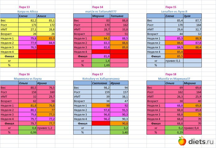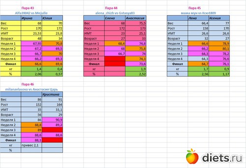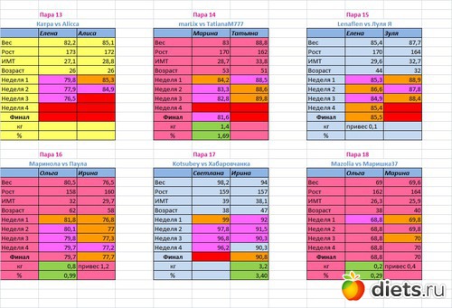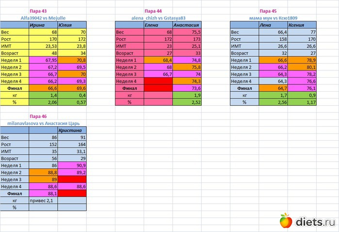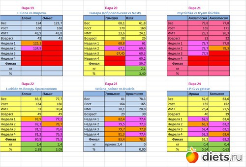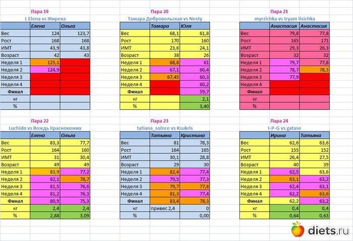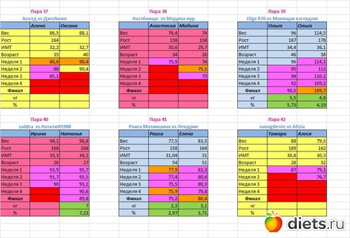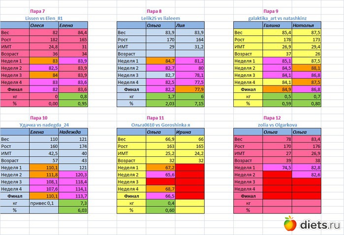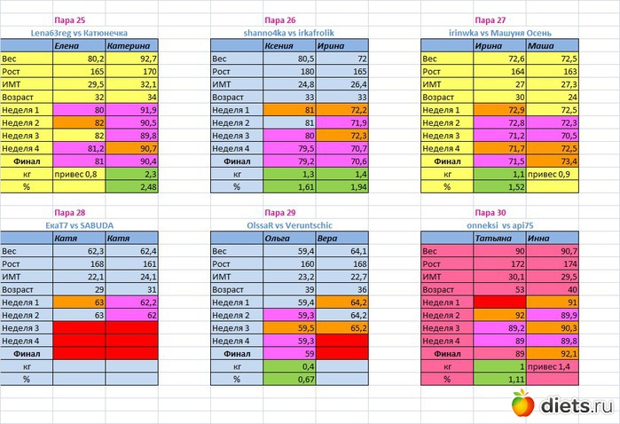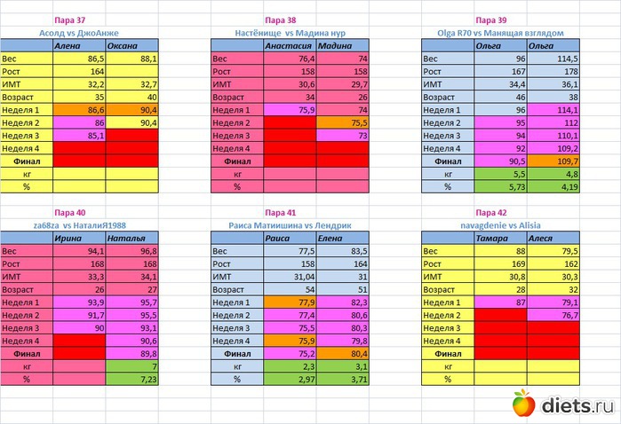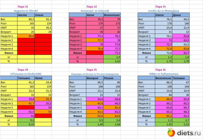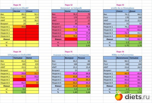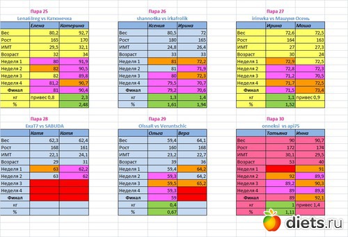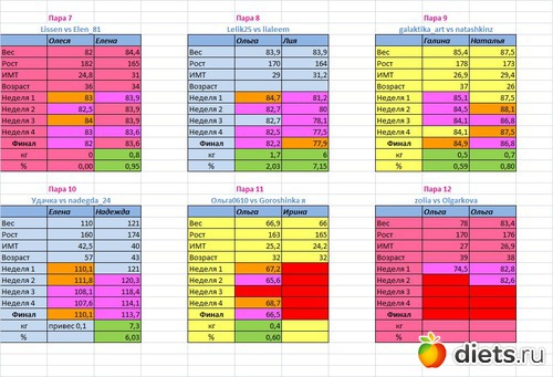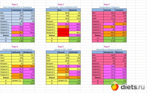 Места распределены в зависимости от процента сброшенного веса