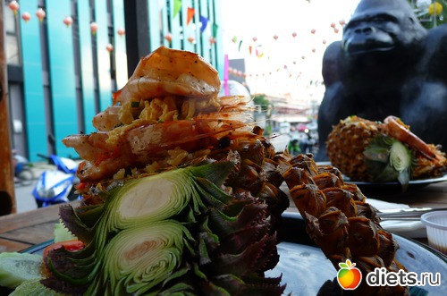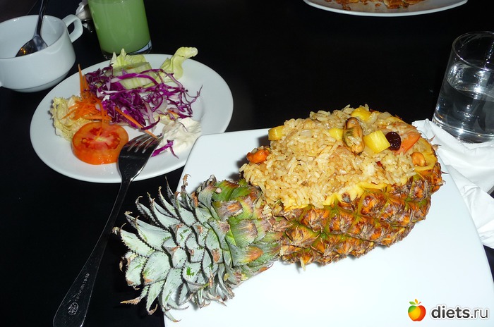 Пошаговый рецепт можно найти в интернете "рис в ананасе"