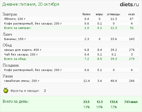 В начале диеты лучше кушать что-то более существенное, чтоб не сорваться.