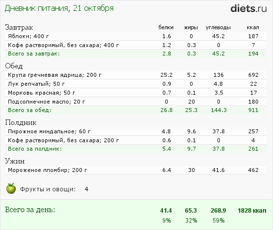 На этой страничке слева есть столбик со всякими полезными калькуляторами. Выберите "калькулятор" и посчитайте калорийность пищи, которую НУЖНО соблюдать для успешного похудения. По-моему, это будет 1000-1200 ккал.