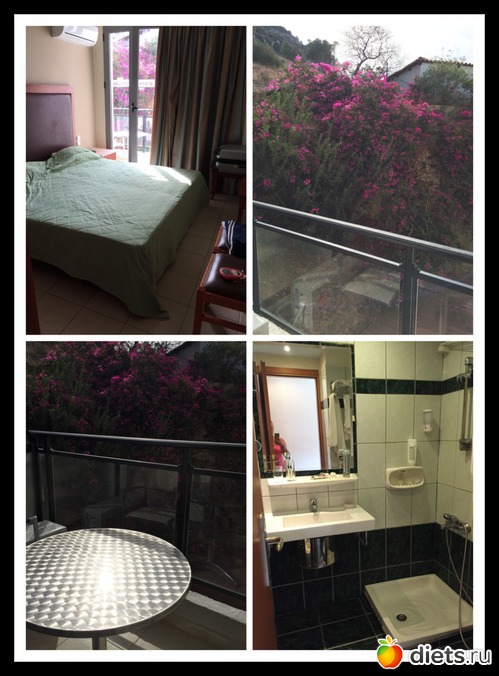 Наши друзья захотели с видом на море... за 50€ им был предоставлен номер в два раза большее нашего, с огромным балконом и обалденным видом из окна.