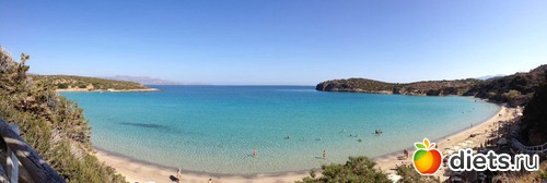 Наш отель находится минут 20 езды на автобусе от Агиос-Николаос (ездили туда гулять, на шоппинг). Пляж, повторюсь, у нас был на мой взгляд самый лучший! Штиль был постоянно, волны появились только после нашего отъезда....но там и ветер был очень сильный. В путеводителе он кажется значится как "золотой пляж"