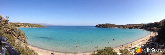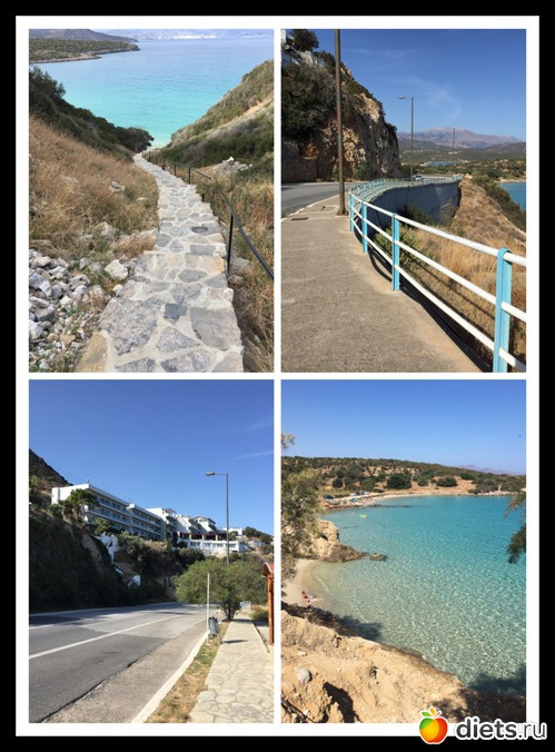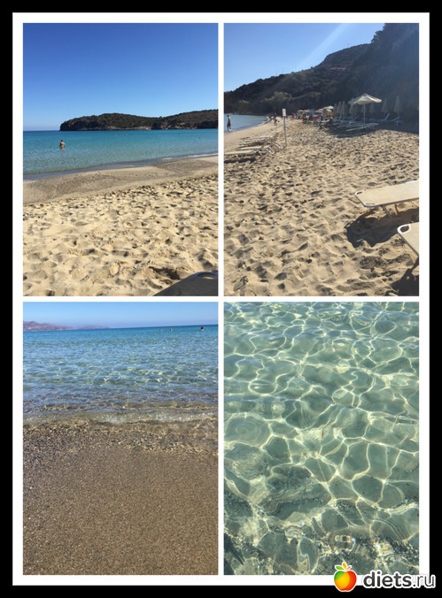 Наш отель находится минут 20 езды на автобусе от Агиос-Николаос (ездили туда гулять, на шоппинг). Пляж, повторюсь, у нас был на мой взгляд самый лучший! Штиль был постоянно, волны появились только после нашего отъезда....но там и ветер был очень сильный. В путеводителе он кажется значится как "золотой пляж"