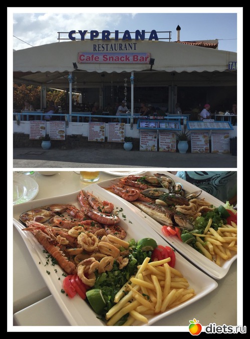 Цена за два огромных блюда (нас было четверо и мы объелись) и четыре пива мы отдали 100€. Можно было и более скромно покушать, но мы ж на отдыхе!