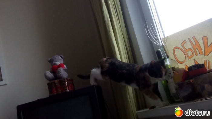 а как она со стола хлеб тащит!!Муж сидит, ужинает. Пришла деловая колбаса, запрыгнула на колени. Села. Он с моей мамой разговаривает. Повернулся, чтобы что-то показать, а эта красавица - хопс - лёгкое движение - и кусок хлеба у неё в лапах) я начинаю отбирать, а она как белка обоими лапами вцепилась и грызёт))