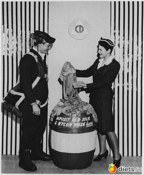 Практически весь производимый нейлон поменял свое первоначальное назначение. Была даже проведена кампания по сдаче женщинами своих чулок на нужды войны.