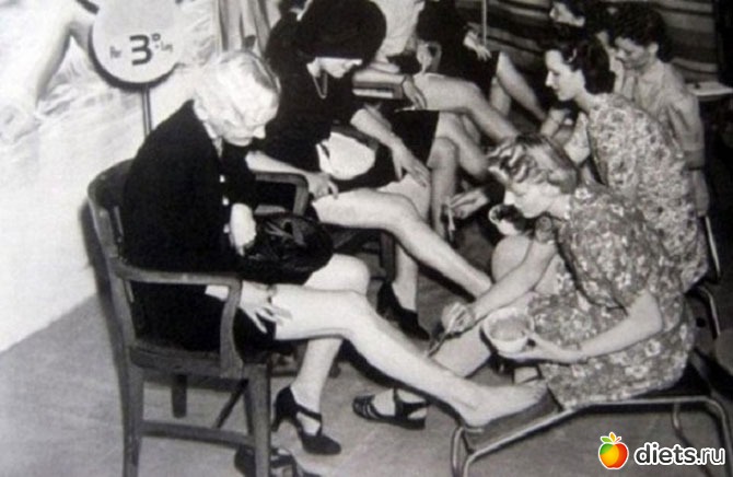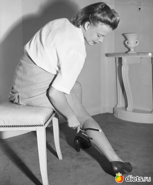 Для имитации чулков на ногах, женщинам необходимо было вначале сделать депиляцию