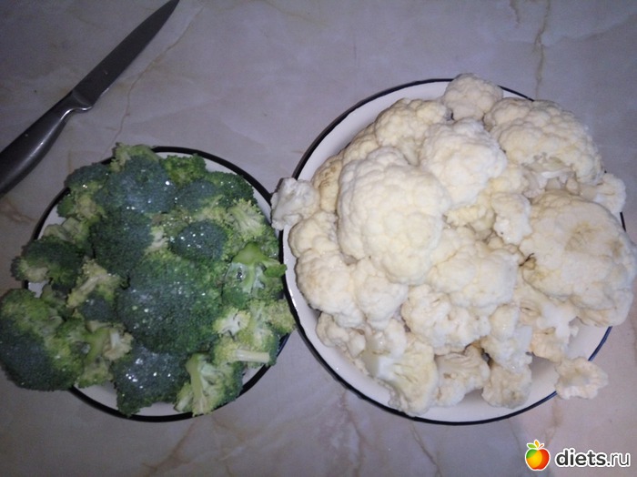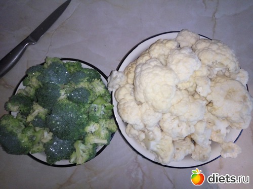 Шаг 1. Разберите капусту на соцветия. Хорошенько промойте её под холодной водой. Положите в кастрюлю с кипящей водой капусту минут на 10.