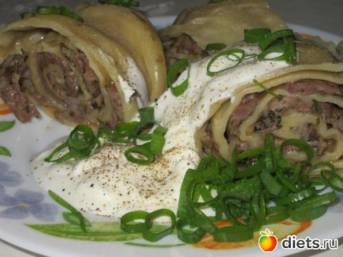 Ну и собственно самый важный момент - сворачиваем лепешку с фаршем в рулетик.