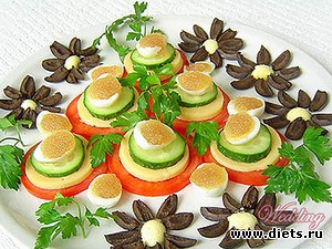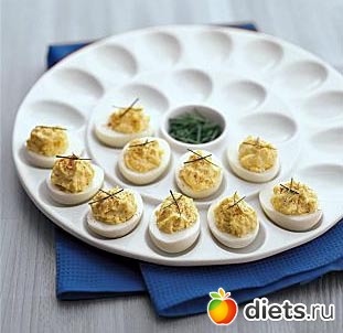 Яйца сварить, очистить и разрезать вдоль на две части. На желток положить черную или красную икру, украсить зеленью и подать на стол