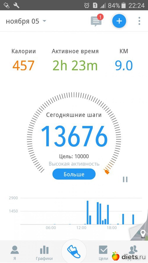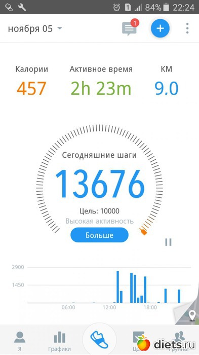 - 1785 кк съедено, -904 кк разница с физ. нагрузкой
