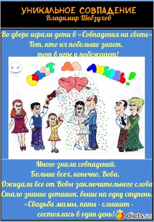 «Свадьба мамы, папы – слышат – состоялась в один день!»