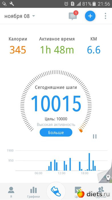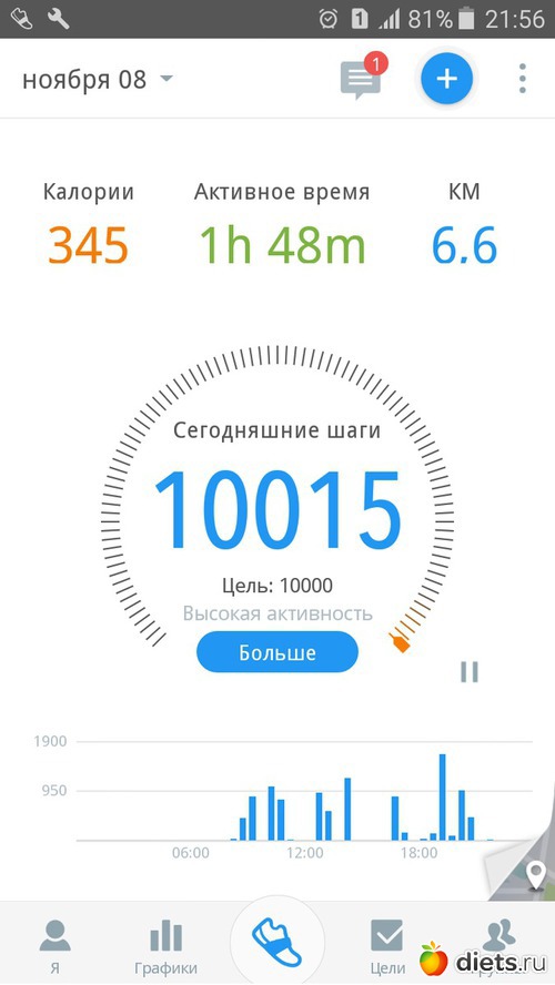 - 10 015 шагов, 345 кк, 6,6 км
