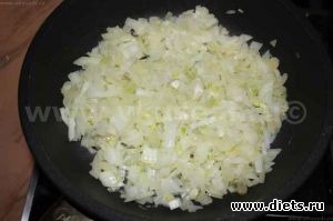 2. Лук и чеснок мелко рубим, пассеруем с маслом в сотейнике.