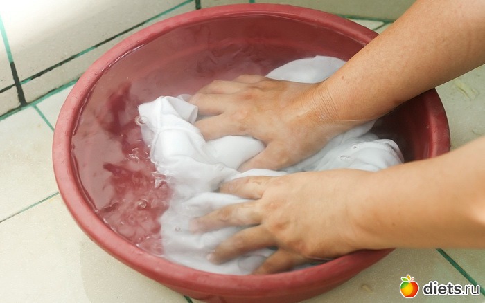2. На следующее утро снова простирать и повторно заложить в новый горячий раствор (обязательно с порошком).