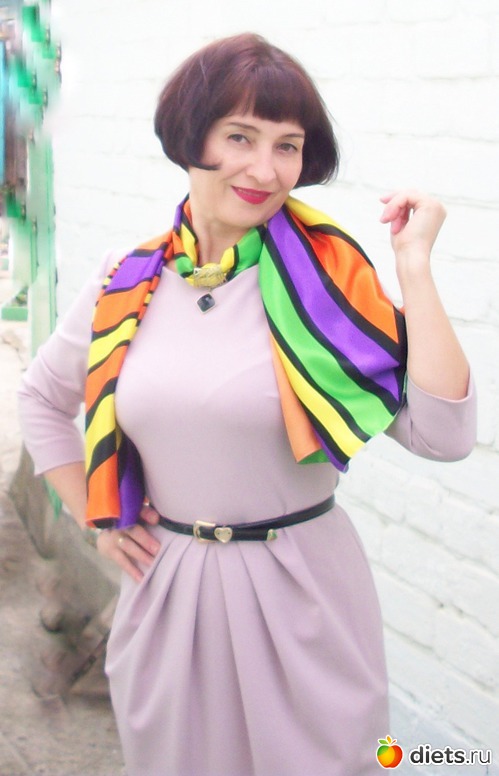 А откуда шарфик, Лена? Ты его тоже сшила? Изумительный. Очень люблю цвет в одежде и цветные аксессуары