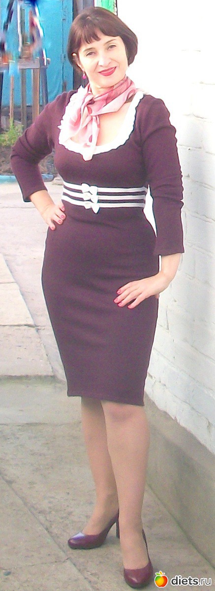 Только видишь, Ириш, у меня проблема образовалась в области талии - какой-то провал. Разница между бедрами и талией стала видна и одежда там складками...Где можно, я поясом подбираю. А в этом платье никак - тут уже и полосок, и бантиков хватает
