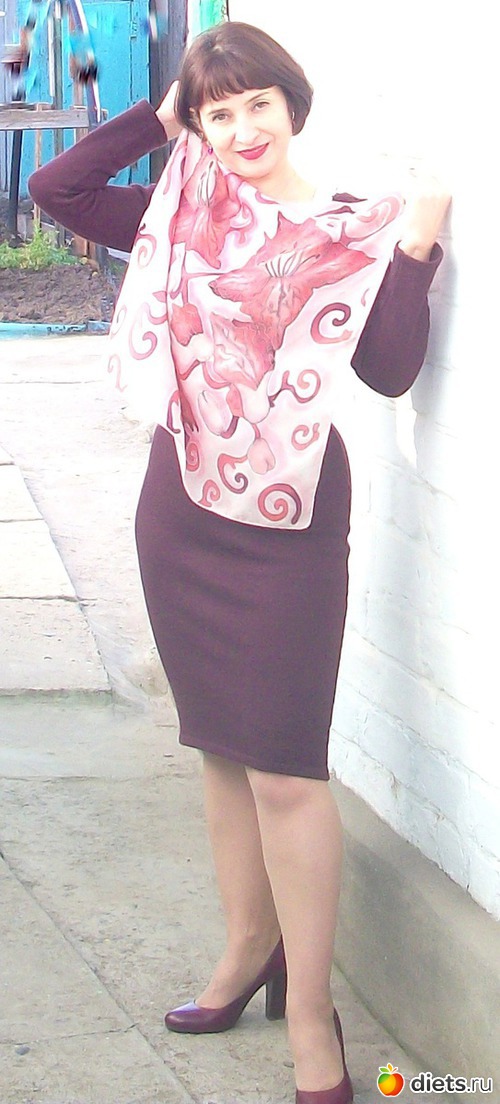 Платочек ну очень хорош! Единственное, когда он сложен и в вырезе платья - совсем не видно красивый рисунок.