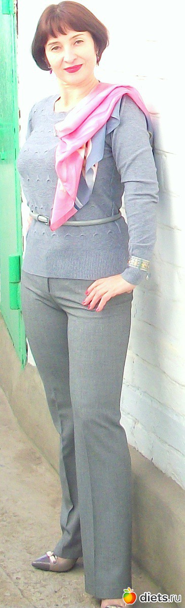 Ну и в брюках тебе очень хорошо. Первый раз вижу тебя в брюках. Но это тоже твоя одежда. Ножки вверху, как я понимаю, у тебя тоже похудели. И такие брючки чудесным образом подчеркивают все твои достоинства