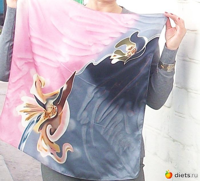 Теперь платочек. Тоже с ЯМ, авторский. Шелк, батик, ручная роспись.