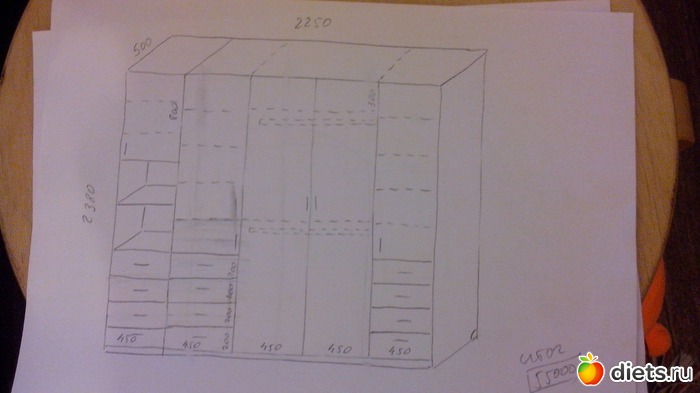 И шкаф (первая секция для разных разностей), остальные 4 для шмотья (большой потому как планируем еще ребенка, а если и не напланируем много не мало решила я ))) )