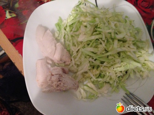 Обед состоялся позже обычного из одной огромной тарелки капустного салатс с оливковым маслом и 350 грамм куриного филе.