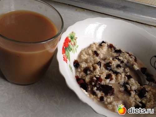 Чуть позже позавтракала овсяной кашей с черносливом и выпила ещё кружку кофе с молоком.