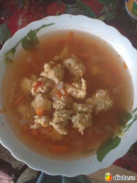 Так как встала поздно не стала есть кашу а в 12:30 сьела огромную тарелку супа с фрикадельками.
