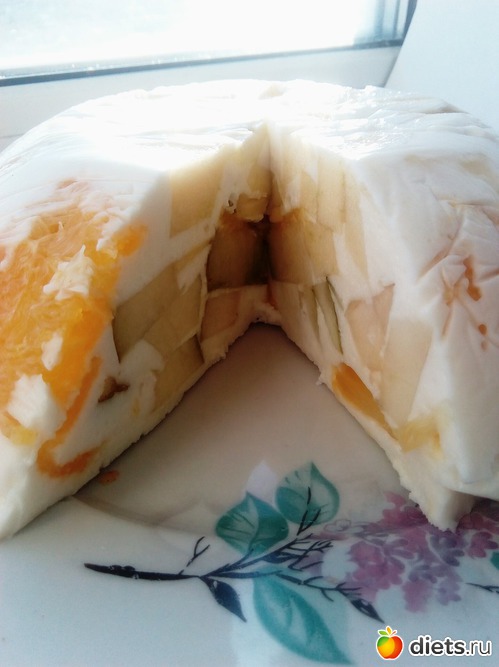 Взять форму(я делала в салатнике)-и выложить внутри пищевую пленку так, чтобы ее концы свисали из формы. Можно делать и в силиконовых формах, тогда выкладывать пленкой ничего не надо(но ставить в холодильник их не очень удобно, да и места много надо под формочки, а у меня вечно не хватает места!)