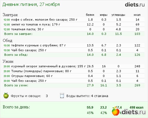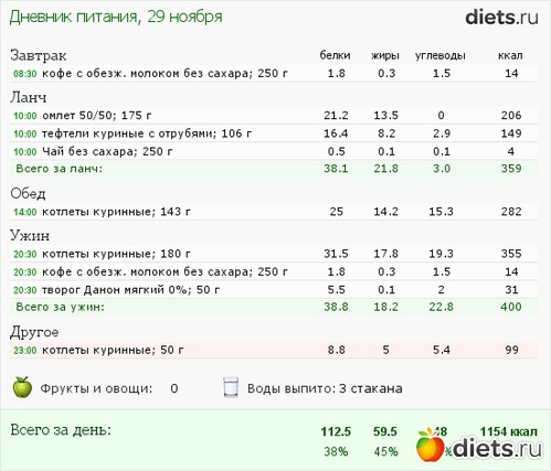 так в принципе все , больше вроде ничего лишнего не успела слопать, аааа те дни я много пила молока и кефира с собой в гараж брала и за день выпила 1 л. обезжиренного молока и 1л. био кефирный 0 , воот точно , так как весь день дома не бала вот этим и питалась , и тока часов в 23-00 ужинали омлет 50/50 ела и сельдь малосол, вооот теперь точно вся картина последних 3 дней........
