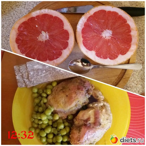 О: индейка запеченая, зелёный горошек, 3 хлебца, грейпф.