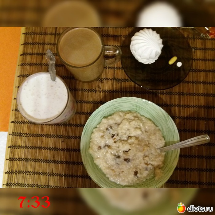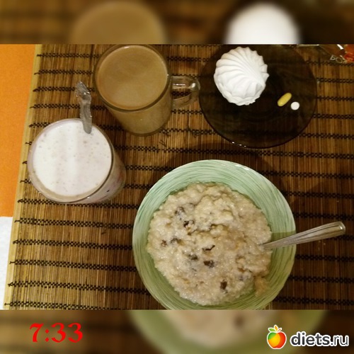 З: овсянка на воде+финики, зефирка, цикорий с молоком, кефир 3,2%+отруби.