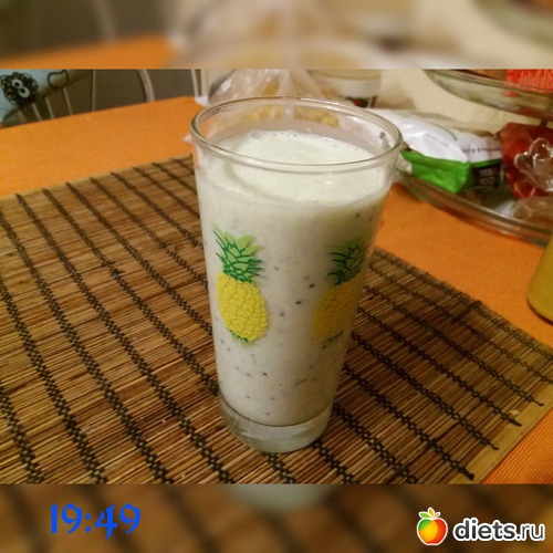 : кефир 3,2%+киви+отруби