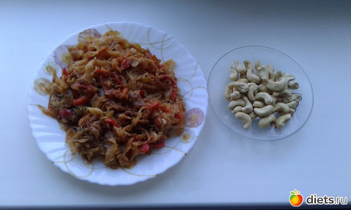 Перекус: тушенная капуста и 50 грамм кешью.
