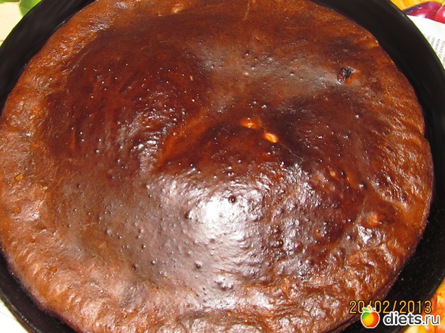 Смазываем форму(если силиконовая-я не смазываю, сбрызгиваю ее простой водой). На нее выливаем половину теста.