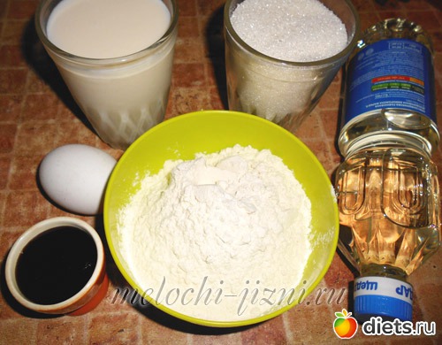 Просеиваем муку, отмеряем необходимый объем сахара, молока и варенья, ставим под рукой бутылку масла, соду и укус, чтобы обеспечить быстрый замес теста.