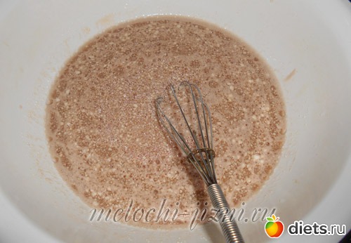 Тесто получается жидковатым, что не должно вас смущать. Переливаем его в подготовленную емкость, отправляем в духовку.