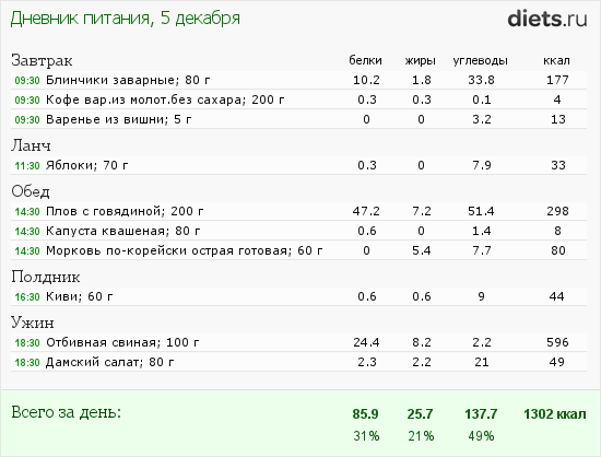 Мое меню за сегодня