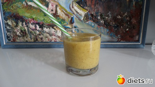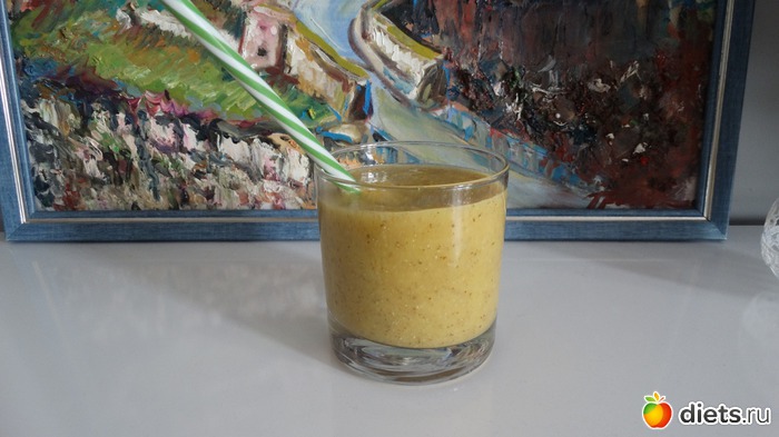 Утром это был фруктовый смузи с ананасом, бананом, манго и семенами чиа(растительные омега-3) 500мл, на два завтрака
