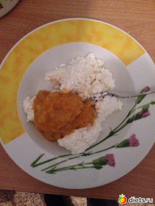 Ужин: творог с тыквенное-грушевым пюре.