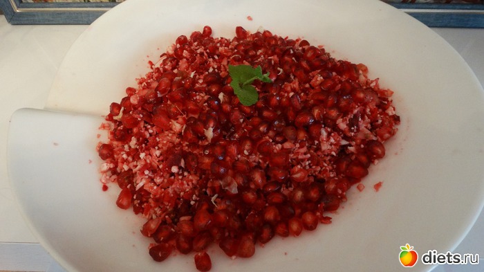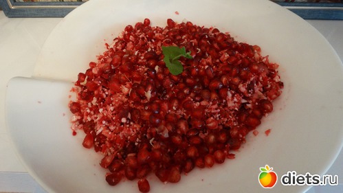 -обед:салат из цветной капусты, свеклы, заправленный солью, оливк.маслом,1ст.л пасты тахини, чесноком и кориандром. Посыпала я салат зернами граната. Очень необычный салат получился! Для гемоглобина просто подарок!