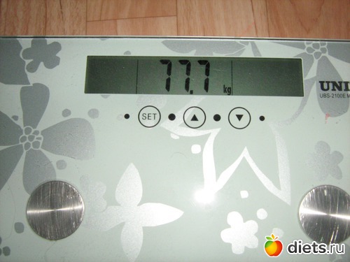 Был привес в 1кг после зажора,вчера отвкс в 79.И седня еле-еле 78 и то , туда сюда кидало цыфры,я еле поймала 78