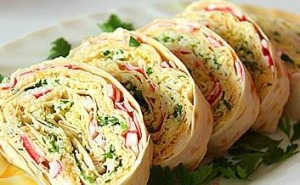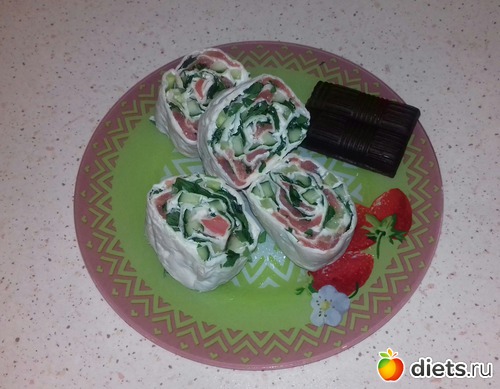 Начинка для лаваша с красной рыбой — одна из самых любимых в нашей семье. Я освещала этот рецепт отдельной статьей, ее вы можете найти по следующей ссылке — «Рулет из лаваша с консервированной горбушей».