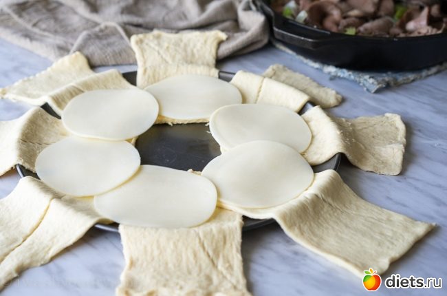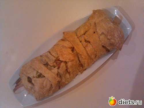 Если готовить в слоеном тесте( лучше- слоеное дрожжевое) - духовка должна быть погорячее ( 200-220 градусов). все остальное- также.