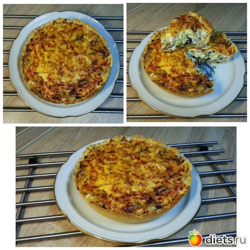Курицу порезать мелко. На раскаленной сковороде слегка обжарить порей с куриным мясом. Курицу с луком перемешать с заливкой. Для ее приготовления слегка взбить яйца вилкой со сметаной, добавить тертый сыр, соль, перец. Распределить начинку по тестовой основе, присыпать сыром, выпекать около 30-35 минут, до золотистой корочки. Перед подачей обязательно остудить.