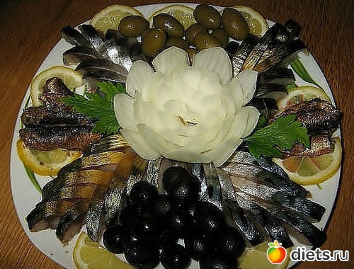 Хочу шубу, картофель в духовке, бутики со шпротами, котлеты "сугроб", бутики с красной рыбкой, жареный карп, скумбрия собственного посола, оливье диетическое