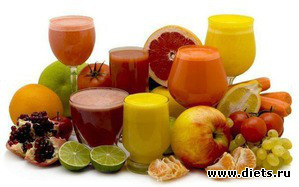 завтрак: сырые фрукты или овощной сок - употреблять так часто, как хочется, но лишь испытывая чувство голода