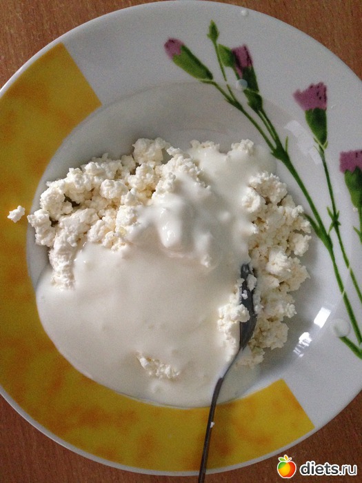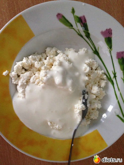 Творог с йогуртом несладким ( с йогуртом намного вкуснее чем с кефиром)