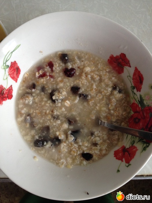 Завтрак: Овсянка с клюквой и черносливом+ яблоко.
